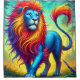 Esta cortina de chá tem um dinossauro fotografado nela.