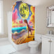 Esta cortina de chá tem um dinossauro nela.