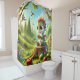 Esta cortina de chá tem um dragão bebê nela.