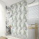 Bring a unique look to your bathroom decor with this elegant shower curtain, featuring a pattern of black and white tigers among green and white tropical leaves on a silver faux foil background.