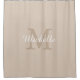 Add a touch of timeless elegance to your bathroom with our custom monogram shower curtain, personalized with your name and initial in a beautifully simple and modern design. Featuring the name and initial in a blend of modern and script fonts with beige and white text set against a beige background, these colors can be changed if preferred. Whether you're updating your own space or gifting to someone special, this piece combines style and individuality in one stunning accent.