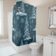 A magical winter forest seamless pattern shower curtain featuring snow-covered pine trees, glowing stars, and red mushrooms under a moonlit sky. Perfect for Christmas, holiday, and woodland-themed designs. Ideal for those who love nature-inspired, rustic, and cozy seasonal art.