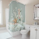 Um cavalo marinho e uma estrela do mar estão elegantemente interligados com plantas marinhas, criando uma cena submarina serena. Cores suaves e muda e detalhes delicados evocam um ambiente calmo e costeiro.