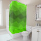 Esta cortina de chá tem um design geométrico de cinco tons de verde correndo horizontalmente.
