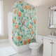 A charming shower curtain featuring colorful songbirds perched among blooming orange and white flowers and fresh green leaves on a soft mint background. A lovely choice for bird lovers, floral enthusiasts, and anyone who enjoys bright, artistic botanical patterns.