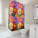 Brighten your morning with a burst of joy this vibrant shower curtain features and all over pattern of colourful smiling flowers and shades of pink purple red and yellow. Each bloom has a cheerful face that is guaranteed to bring a smile to yours perfect for a kids bathroom or anyone who loves whimsical high energy decor this floral garden design turns your daily routine into a happy celebration of colour and pose