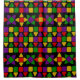 Esta cortina de chá tem um design de História Negra de flores e linhas feitas de triângulos e retângulos.