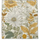 Uma ilustração macia e pálida das flores e folhas em tons mudos de amarelo, sábio e laranja.