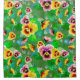 Flores cor-de-rosa e amarelas, folhas verdes sobre fundo verde