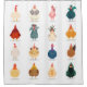 Um grupo de galinhas e galos coloridos, bonitos e engraçados, em fila.