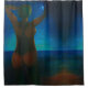 Garota à noite na praia - pintando trabalho de arte por Zina Stromberg em uma cortina Chá.
