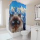 Animais bonitos, animais de estimação, gatos. Gato Himalaia com olhos azuis, montanha de Himalaya e Monte Everest.