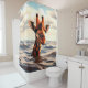 Esta cortina de chá tem uma girafa perdida.