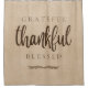Apresenta um texto castanho escuro grato, agradecido, abençoado num fundo castanho claro com um elemento decorativo. Perfeito para o outono e a época de colheita ou a qualquer momento!