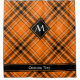 Amostra moderna de tartã laranja e preto de halloween. Texto personalizado e monograma.