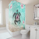 Um design de tartaruga tribal estilizado com padrões intrincados é centrado sobre um fundo taruga, rodeado por delicadas flores de hibisco rosa. A cena evoca uma sensação divertida e bizarra com sua mistura de elementos inspirados na natureza.