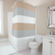 Adicione um toque moderno ao seu banheiro com esta cortina horizontal de tons de terra chá. Excelente para adicionar um toque neutro à decoração da casa de banho.