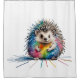 Ein freundlicher Igel in bunten Farben, eine kindliche Zeichnung eines Igels, mit Tusche und Kreide, gekleckst und geschmierte ist die Farben als Stil und Effekt des lustigen Bildes.