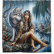 Sob o brilho luminoso de uma lua de cheio, uma índia senta-se graciosamente ao lado de um lobo majestoso, seu vínculo evidente na tranquilidade do momento. Cercados por árvores exuberantes e águas suaves, eles incorporam o espírito de harmonia na natureza.