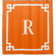 Borda decorativa do estilo chave grego branco e monograma serif moderno em um fundo de cor sólida tangerina. Personalize este design de borda de linha mais fina com opções de cores favoritas para corresponder ao decoro do banheiro. NOTA: a borda foi projetada especificamente para esta cortina de chá. O gráfico não é um quadrado perfeito. Eu sugiro procurar outros produtos com forma quadrada na minha loja para uma fronteira para eles. Normalmente posso terminar as solicitações de transferência dentro de uma semana.