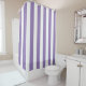 Decorre o seu banheiro com esta moderna cortina de chá listrada. Design de padrão de listras verticais em bela lavanda pastel, cor violeta, roxa. Decoração moderna do padrão striped.