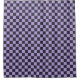A vibrant checkered pattern with alternating black and lavender squares creates a bold, symmetrical grid. The design is balanced and visually striking.