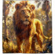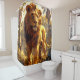 Esta cortina de chá tem um leão pintado nela.