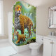Esta cortina de chá tem uma design-leopardo nela.