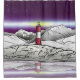 Uma ilustração paisagística do Farol Les Eclaireurs, na Argentina. Esta design tem um céu noturno roxo e uma cordilheira refletindo no oceano calmo.