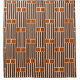Esta cortina de chá tem um design geométrico de cinco linhas com duas caixas em cima repetidas sobre o design.