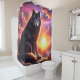 Esta cortina de chá tem um design de lobo nela.
