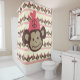 Uma cortina de chá rosa, branca, castanha e bronca com muitos macacos bonitos com chapéus cor-de-rosa com símbolos de paz!