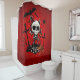 Mágica de abóbora e diversão óssea. Em meio a um cenário sombrio de cemitério, um esqueleto animado fica preso em uma pilha de pedras intactas. O esqueleto, com seus membros ósseos e sorriso malicioso, veste um arco vermelho em greve ao redor do pescoço e apontou chifres diabólicos que lhe dão uma expressão lúdica, mas maliciosa. Na sua mão direita, ele segura orgulhosamente uma lanterna em forma de abóbora brilhante sobre um palito longo, cuja luz quente irradia suavemente para os arredores. O fundo da design é um vermelho vibrante que enfatiza o espírito festivo do Halloween.