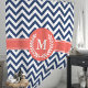 Cortina Para Box Marinho Azul e Coral Chevron Laurel Monograma