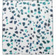pequenos pedaços de mármore, quarts ou outros materiais de pedra unidos, polidos para uma superfície lisa, decoração geométrica em tons azuis aquamarinos e trazendo frescura do oceano e do mar para casa