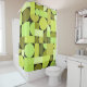 Este retrato da década de 1950, chamado padrão de arte abstrato, tem quadrados, círculos e meio círculos em tons de verde-chartreuse.