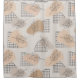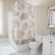 Um Design Minimalista Abstrato em Preto e Bege sobre uma Cortina de Banho Bege para o Banheiro