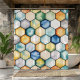 Add a pop of modern color to your bathroom with this geometric honeycomb shower curtain! Featuring a stylish hexagon pattern in soft watercolor shades of blue, green, yellow, and orange, this eye-catching design brings a fresh and artistic vibe to your space. The blend of warm and cool tones creates a perfect balance—ideal for contemporary, boho, or mid-century modern décor.