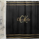 Um fundo preto decorado com listras de ouro falsas. Personalize e adicione suas iniciais e nome do monograma.