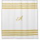 Monograma Dourado Metálico e Bares Horizontais Padrão na Cortina de Chá Branco adiciona um duro elegante clássico à decoração do banheiro.