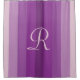 Esta cortina de chuveiro minimalista simples tem um fundo de listras de diferentes tons de roxo. Monograma é roxo claro. Um presente de decoração de casa simples, mas elegante para um casamento ou inauguração. Todos os Direitos Reservados © 2015 Alan & Marcia Socolik.