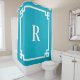 Borda decorativa do estilo chave grego branco e monograma serif moderno em um fundo de azure de cor sólida. Personalize este design de borda de linha mais fina com opções de cores favoritas para corresponder ao decoro do banheiro. NOTA: a borda foi projetada especificamente para esta cortina de chá. O gráfico não é um quadrado perfeito. Eu sugiro procurar outros produtos com forma quadrada na minha loja para uma fronteira para eles. Normalmente posso terminar as solicitações de transferência dentro de uma semana.