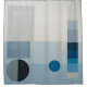 Blocos de cores azuis e cinzas, um pequeno círculo azul, e um círculo maior, preto e cinza se combinam para fazer uma adorável e minimalista cortina de chá de arte moderna.