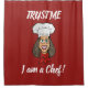 Cabeça de chef com chapéu, corcunda vermelha e texto personalizado.