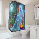 Esta cortina de chá tem um fantasma tocando violão nela.