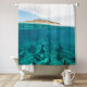 Cabeça para a aventura da natação submarina, onde esculturas antigas estão escondidas e a água está cristalina. Uma visão lateral dos céus azuis para debaixo do oceano onde um mergulhador descobriu o museu no chão do mar, enquanto uma ilha tropical aparece flutuando à distância. Um visual muito legal para a decoração do banho ou numa casa de praia.