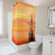 Esta cortina de chá tem uma nave legal e o pôr do sol nela.