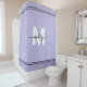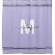 Cortina de Banho Feminina com Nome Monograma Personalizado em Letra Elegante e Luz Rósea. Esta cortina de banho chique adiciona um toque luxuoso a qualquer banheiro com um design de monograma personalizado em um fundo suave de cor roxa clara. Apresentando uma letra inicial branca em negrito e um nome em letra cursiva preta fluida, o design é acentuado com listras duplas brancas na parte superior e inferior para um detalhe refinado. Todas as cores são totalmente personalizáveis para combinar com o seu estilo e decoração do banheiro. Perfeita para casamentos, aquecimentos de casa ou aniversários, esta cortina de banho monogramada combina estilo com praticidade, adicionando elegância atemporal ao seu espaço.