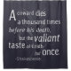 A sabedoria eterno do Júlio César de William Shakespeare ganha vida nesta poderosa citação: "Um covarde morre mil vezes antes da sua morte, mas o corajoso gosto da morte, mas uma vez. Parece-me muito estranho que os homens tenham medo, vendo que a morte, um fim necessário, virá quando chegar." Estas palavras de coragem inspiraram inúmeros soldados, equipes e aventureiros a darem passos ousados em frente. Recordam-nos que a vitória não pode ser alcançada sem bravura, e que viver com medo só conduz a mil pequenas derrotas. Essa mensagem ressoa além do seu contexto original, ecoando os ensinamentos de Jesus: "Quem ama sua vida a perder, e quem odeia sua vida neste mundo a manterá para a vida eterna." Coragem verdadeira significa valorizar o que é certo sobre o conforto pessoal, e encontrar a força para agir de forma altruísta e ousada perante o medo. Seja como inspiração para si mesmo ou como encorajamento para alguém com quem se importa, que esta citação sirva como um lembrete para viver corajosamente, escolher a coragem sobre o medo, e abraçar as maiores recompensas que vêm de fazer o que é certo.