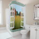 Uma série de cortinas de chá com uma cena da paisagem exterior vista através da multi-paned janela com cortinas. Dê a seu banheiro o olhar pairoso de uma janela de imagem com cenário bonito.